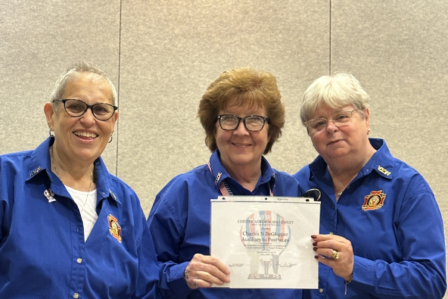 10-16-2025: The new 2026 National Podium Edition Bylaws and Ritual has been to MALTA. You can find the link under the Resources tab or you can also click HERE.10-12-2025: The entire 2025-2026 Program Guidebook is now available for download. Click HERE. Or visit the general Program page by clicking HERE.10-12-2025: New pictures have been added to the Gallery from the 2025 Department Fall Conference. Take a look HERE.8-24-2025: New pictures have been added to the Gallery from the VFW Auxiliary National Convention, Columbus, OH. Click HERE for the Gallery.8-21-2025: Fall Conference information is now available. Click HERE.7-27-2025: Pictures from the 2025 OMTI have been posted in the Gallery. Take a look HERE.6-26-2025: Department Convention pictures have been added to the gallery - click HERE.6-20-2025: The Joint Department Homecoming for Commander Jim MacArthur and President Justine Robles is scheduled for August 23 at VFW Post 9593. View the flyer and details HERE.6-8-2025: Marcus Morton, 1st Place Patriots Pen winner at VFW Post 8647, receives local and national recognition for his essay and selfless actions thereafter. Read the whole story HERE.5-23-2025: A new Auxiliaries in Action article has been posted. District 6 dedicates a Veteran Memorial, click HERE.5-20-2025: New pictures from the April 2025 MOCA Convention have been added to the Gallery, click HERE.5-7-2025: New pictures have been added to the Gallery: Gold Star Tea, click HERE and Aux 2064 50th Anniversary, click HERE.