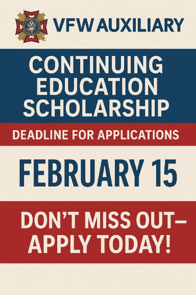 - Deadlines fast approaching for VFW Auxiliary Scholarship opportunities!