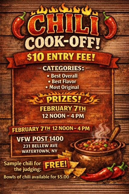 * Events: - Watertown Aux 1400 Chili Cook-Off